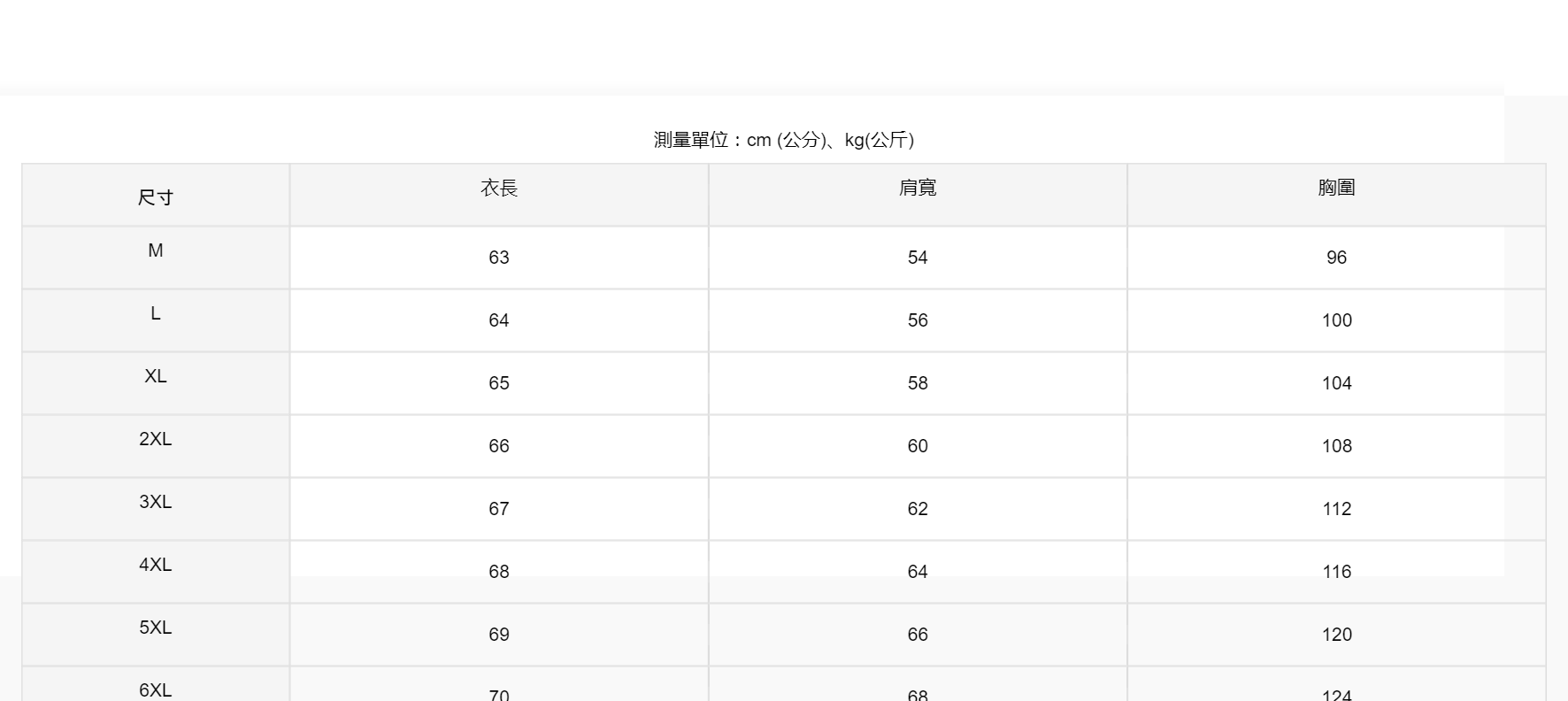 L : 衣長64 肩寬: 56 胸圍 : 100